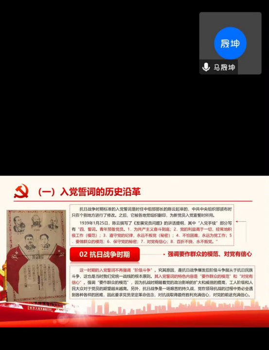 5月11日,公司党委组织部副部长庞贺峰开展了党课培训第七讲“党的光辉历程”。从抗日战争到解放战争,百年风雨兼程,百年伟大跨越,党的光辉历程在庞贺峰老师的讲解下变得生动形象。党史学习教育对同学们来说是一次生动的精神洗礼,让他们鼓起了迈进新征程、奋发新时代的精气神。