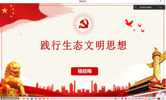 5月4日,杨延梅讲授了第三讲党课“践行生态文明思想”。杨延梅指出,要坚持习近平生态文明思想,传承中华文明优秀传统文化的思想精髓,坚持发展中国家可持续发展原则。她告诉同学们,中国式现代化就是人与自然的现代化,并带领同学们见识了党建引领业务工作的开展和太阳成集团tyc122ccvip官网入口的特色党建。