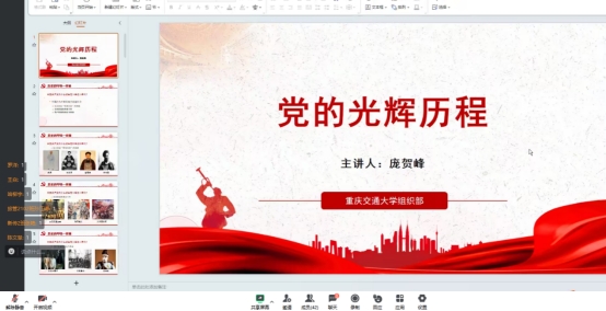 公司党委组织部副部长庞贺峰带来了《党的光辉历程》《党的百年奋斗史》。他说道:“中国共产党经历了一次又一次磨炼,才成就了如今的新中国。”庞贺峰勉励参训学员要坚定理想信念,听党话,跟党走。
