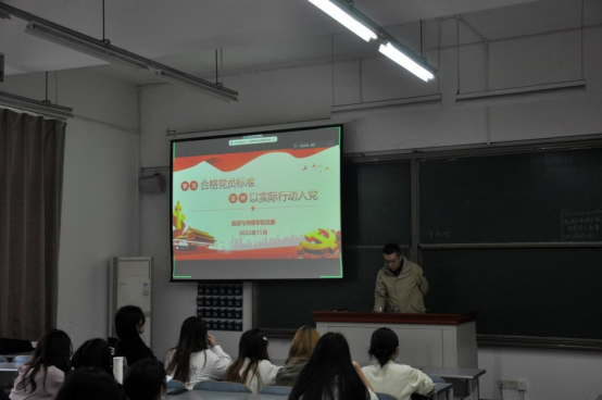 马晟坤书记为积极分子们带来党课《践行合格党员标准,以实际行动入党》,他为大家介绍了入党的流程和基本条件,教同学们如何做一个合格的党员,一个合格的党员需要遵守党章,加强党性;坚定信念,加强学习;遵纪守法,廉洁正派;向榜样学习,向群众学习。