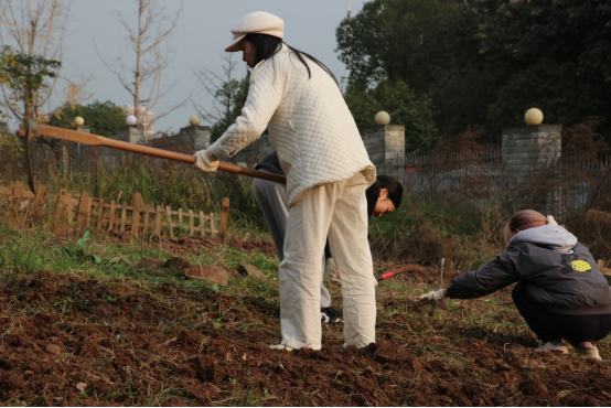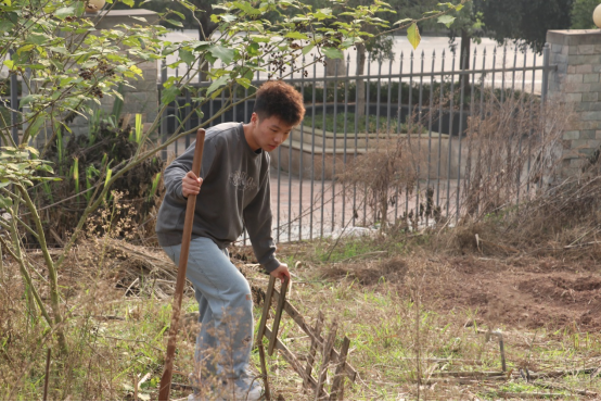迎着冬日暖阳,同学们不怕脏、不怕累,认真地清理着劳育基地内的杂草和乱石。他们手持锄头和镰刀,仔细地开垦着每一寸土地,为后续的种植做好准备。