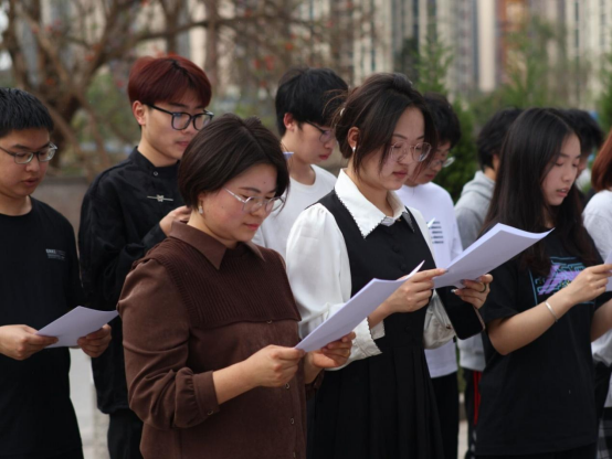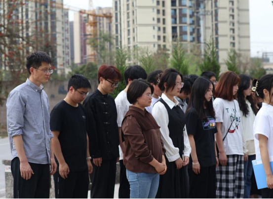 随后全体师生在主持人的带领下,默哀一分钟,入党积极分子们呈现整齐的队形,以肃穆的姿态表达对冉钧烈士的沉痛哀思和对英勇精神的崇敬。