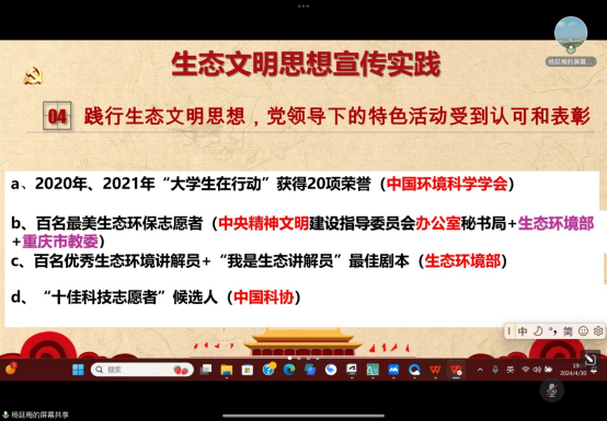 杨延梅为入党积极分子们带来《生态文明思想宣传实践》的专题培训。她聚焦习近平生态文明思想,强调其在可持续发展和社会和谐中的重要作用,同时,强调生态文明思想贯穿着坚持以人民为中心的发展思想,体现了党的理想信念、性质宗旨、初心使命。此外,她指出公司员工在此方面的成就,鼓励同学们结合自身工作实际,创新宣传方式,向前辈学习。