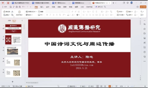 随后,陆地教授对中国诗词与周边传播理论进行了深入的讲解。在讲述中国诗词的内在结构与张力时,为了让同学们更好的吸收知识,陆地教授用白居易的《继韬光禅师》还有崔颢的《黄鹤楼》作为典例进行讲解。同时,陆教授从专业的角度向同学们普及了中国诗词对少数民族文化圈的影响,以及中国“汉字文化圈”对于周边国家的影响,通过介绍狭义的周边传播和广义的周边传播的概念,让同学们对传播学领域有了更全面的认识,也帮助他们更好地理解中国诗词在文化传播中的重要作用。