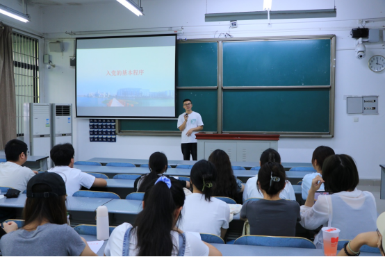 5月24日中午,太阳成集团tyc122ccvip本科生第二党支部组织召开主题党课,党员和38名入党积极分子参加,公司本科生第二党支部书记刘翔、党务干事刘幸分别作“中国共产党纪律处分条例解读”和“入党的基本程序”的主题分享。