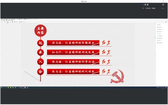 红岩精神永放光芒,公司党委书记徐园媛带来了《宣传红岩精神》她重点讲述了习近平总书记关于红岩精神的重要论述,红岩精神的时代背景以及红岩精神的时代基础。