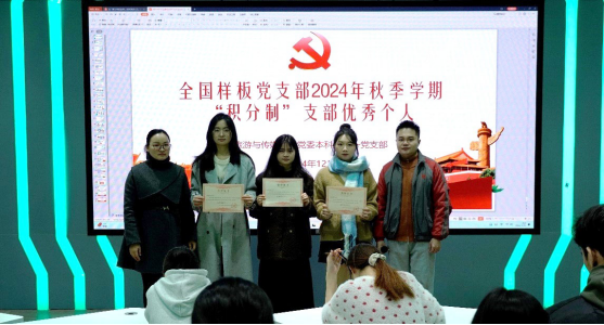 “积分制”是一支部加强党员日常教育管理的重要手段,也是落细落实“三会一课”的重要措施,按照《公司党委本科生第一党支部党员积分制管理赋分参考标准及打分办法》,2024年秋季“积分制”支部优秀个人名单如下:王海燕、徐闽霞获得一等奖;张鑫、李思梦、牟文怡、黄练念获得二等奖;熊茂伶、韩彦丽、龙心怡、邓雅妮、廖虹宇、巨虹获得三等奖。