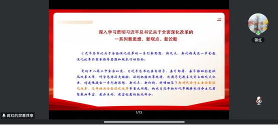 蒋红教授围绕“认识全会的重大意义、领会全会的重要精神、理解全会的重大举措、全力以赴抓好贯彻落实”四大核心主题展开讲学。她站在全局的高度,将理论与实践紧密结合,系统而深入地解读了全会精神的深刻内涵。