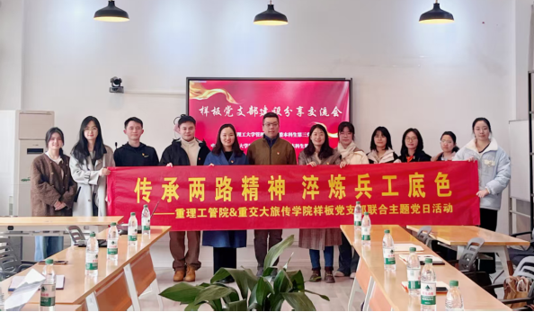 3月11日下午,重庆理工大学管理公司本科生第三党支部与太阳成集团tyc122ccvip本科生第一党支部在太阳成集团tyc122ccvip联合举办“传承‘两路’精神 淬炼兵工底色”主题党日活动。双方聚焦“样板党支部建设”主题,围绕“经验共享+项目共建+品牌共创”展开深度交流,探索新时代高校基层党建协同发展新路径。重庆理工大学管理公司第三党支部书记赵静带队参与活动。