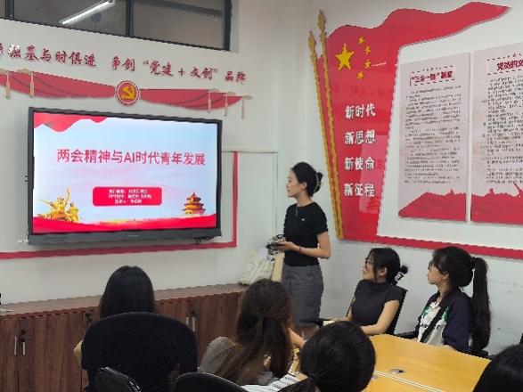 实践活动以小组PPT汇报形式开展,各小组聚焦全国两会精神,结合专业特色,阐释新时代青年的使命。朱世秘、邓雪莉、张乙小组提出,青年应坚持习近平新时代中国特色社会主义思想指导,将个人理想融入国家发展大局,以扎实学识服务社会,在创新与奉献中成长。詹卓樾小组以“AI时代青年发展路径”为切入点,提出“技术深耕、创新转化、伦理守护”的行动框架,呼应两会“创新链与产业链对接”要求,倡导青年成为科技报国的先锋与砥柱。孙志扬等五人小组引用“青年兴则国家兴”,强调青年需增强使命意识,在为民服务中践行初心,为实现中国梦贡献智慧。