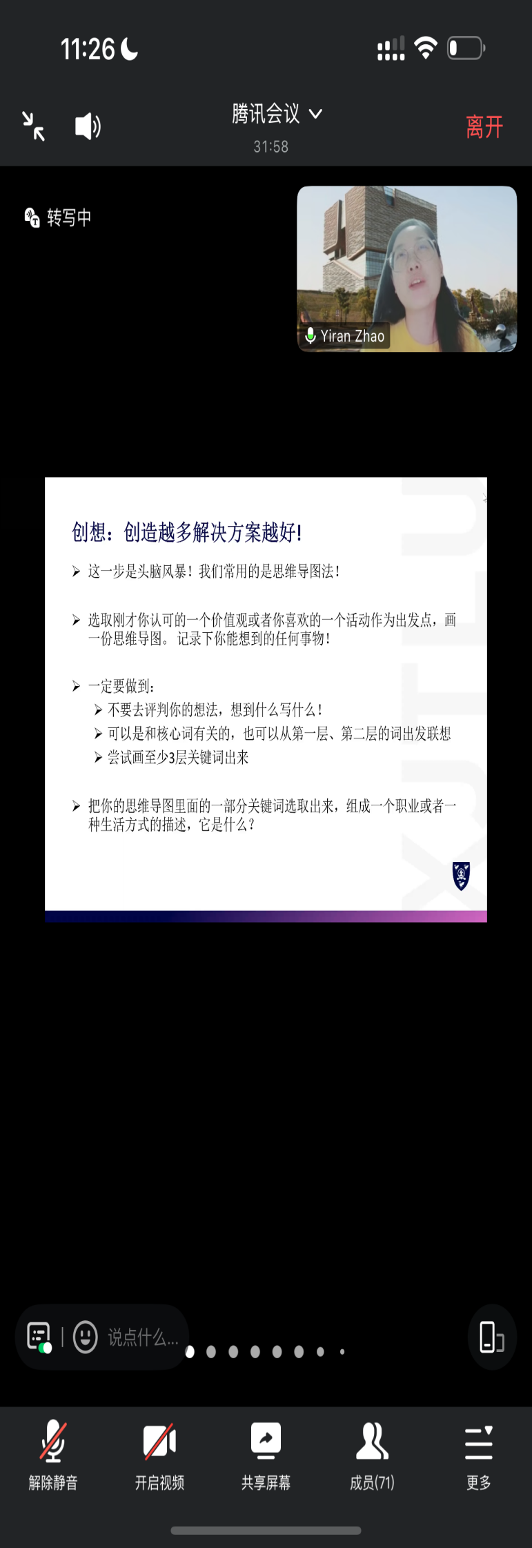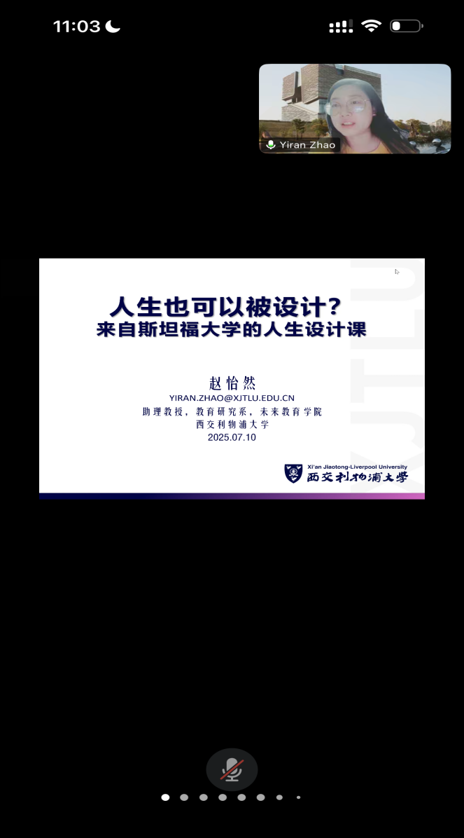 2025年7月13日,西交利物浦大学未来教育公司教育研究系赵怡然博士,通过线上平台为太阳成集团tyc122ccvip员工党员开设了一场主题为“人生设计课”的专题培训。此次讲座以设计思维为核心,引导员工党员通过系统性方法探索人生规划,助力员工党员在学术与职业发展中构建清晰方向。