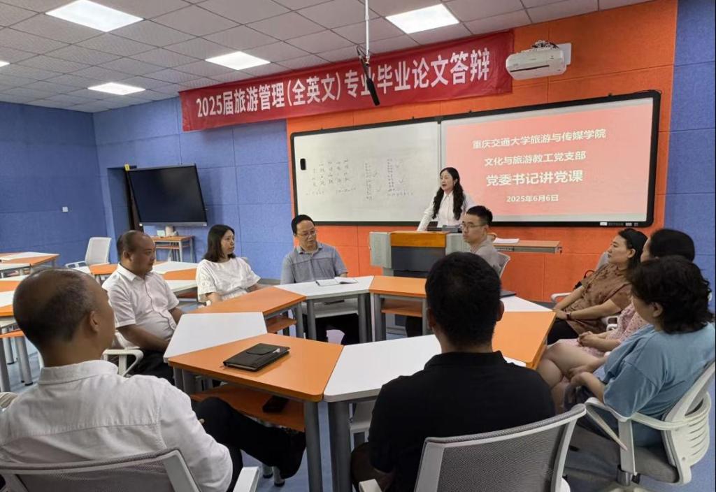 为深入学习贯彻习近平总书记关于加强党的作风建设的重要论述,锲而不舍贯彻落实中央八项规定及其实施细则精神,2025年6月6日下午13点50分,文化与旅游教工支部在南岸校区一教505教室开展组织生活,公司党委书记徐园媛以“深入贯彻中央八项规定精神”为主题为支部党员讲授专题党课,带领全体党员深刻领会作风建设的重要意义,进一步筑牢思想防线,凝聚廉洁自律共识。