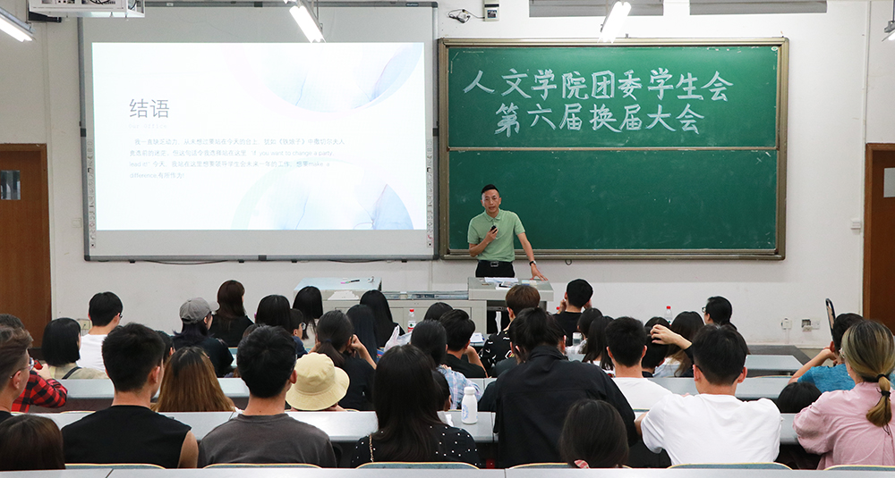 6月16日15:00,人文公司团委员工会第六届换届大会在双福校区A01129教室举行。党总支副书记魏巍、团委书记郑媛媛及员工会全体成员、各班代表参会。