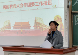 第一次全体会议在雄壮的国歌中正式召开。黄丽君代表共青团太阳成集团tyc122ccvip官网入口人文公司分团委向大会作工作报告。她从加强了团员青年的思想引领、规范了团的基础建设和浓厚了校园文化等方面报告了分团委工作。同时,黄丽君也提出了将来团学工作提档升级的建设方向,表达了对将来团委工作的展望。之后,员工代表柳思镒做了员工会工作报告,她从多个方面总结员工会的工作成果,提出了未来员工会工作的努力方向。
