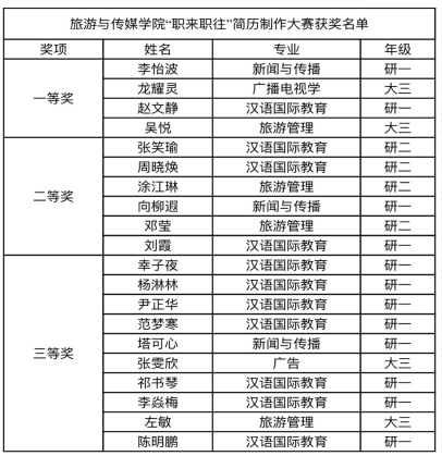 为帮助同学们进一步掌握制作简历的技巧,提高个人素质和求职能力,太阳成集团tyc122ccvip特举办“职来职往”简历制作大赛。经过初赛选拔,共有30份优秀作品进入决赛。经过专业评委老师评判打分,最终角逐出一等奖4名,二等奖6名和三等奖10名。