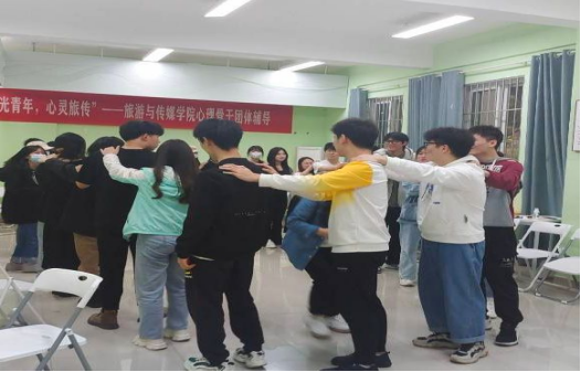 5月18日,旅游管理2班在科学城校区心理咨询中心开展团体辅导活动。在破冰环节中,心理委员带领大家一起‘反转指令’。“向上看”“抬右脚”……同学们全神贯注,身体力行,一个个蹩脚出错的模样也引得哄堂大笑,团辅活动也在大家的笑声中正式拉开帷幕。