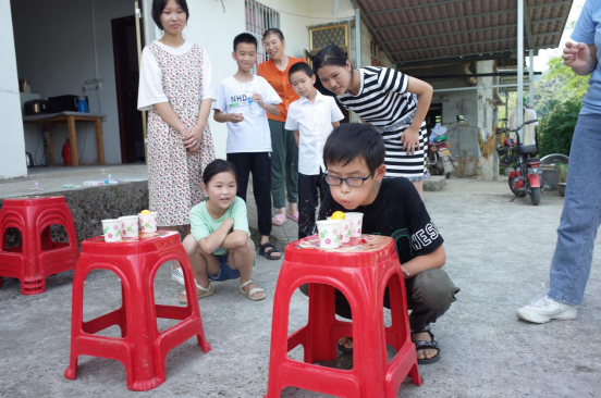 泉水村的小朋友们对“三下乡”实践服务团的到来很是欢迎,村里的工作人员也大力支持,为实践服务团提供了场地和相关资源。考虑到刚放暑假,安全问题是重点,加之儿童年龄较小,在过来参与活动的过程中可能会出现不安全因素,于是实践服务团的志愿者们便分批次分场次到三个地方与留守儿童开展活动。