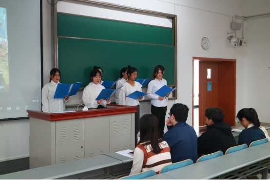 比赛伊始,主持人简单介绍了本次评分细则,此次比赛共有十支队伍参与,他们以青春之声、报国之情,热烈歌颂对党和国家的崇高敬意,现场掌声不断,氛围热烈。《结缘渝水,共赞新时代》《庆党百年路,礼赞二十大》《我们不会忘记》……一首首感人肺腑的诗篇饱含了同学们永远跟党走的决心,一声声清澈洪亮的赞美彰显了同学们的身为华夏儿女的自豪。
