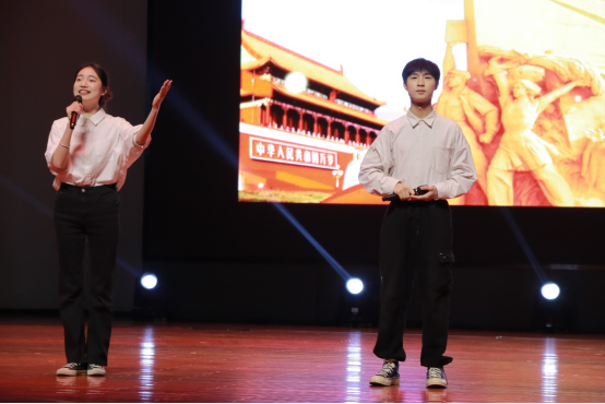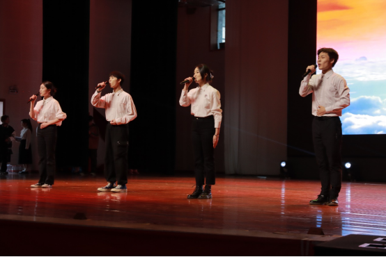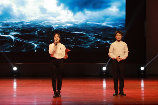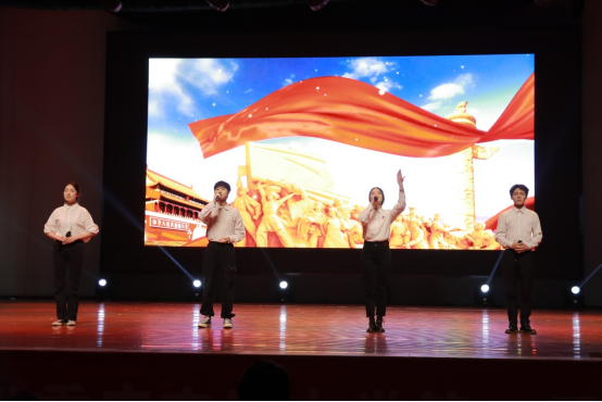 比赛现场气氛热烈,掌声不断,同学们热情高涨。公司员工党姚皓文、李卓然、徐金辉和詹卓樾带来的是第六个作品《光的赞歌》,“光,给我们送来了新时代的黎明,我们的人民从四面八方高歌猛进……”,他们用感情充沛的声音为我们展现了党百年来的坎坷与磨难,用激昂的语调抒发了对祖国的热爱。