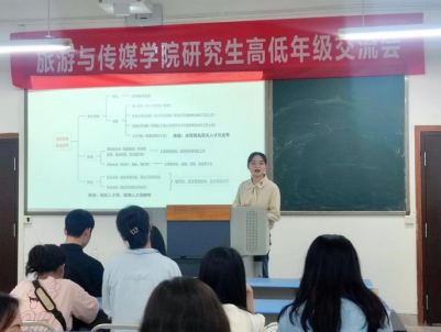 本次高低年级交流会邀请到了21级新闻与传播专业研究生闫相儒、何彩霞、吴越嘉,21级汉语国际教育专业研究生张心耀、朱华梅,20级旅游管理专业研究身邓莹共六位毕业年级的同学为22级的同学们分享就业经验。会上,六位同学分别针对就业信息筛选、考公考编准备、简历制作方法、面试流程与技巧、择业规划等多个方面的问题进行了详细讲述,22级的同学们认真聆听并积极提问交流。