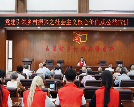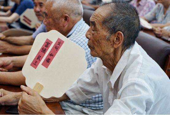 活动当天,宣讲团为参会新老党员们分发了团队成员亲手书写的题有社会主义核心价值观24字的扇子。这不仅在炎热的夏日带给人们一丝清凉,也使得社会主义核心价值观以寓教于乐的方式深入人心。“你们这群员工娃娃有心了,还给我们送一把扇子啊”玉皇村老党员夏国华在接过扇子时连连点头表示赞许。一把“清凉扇”常握手里,社会主义核心价值观常记心头,让中华优秀传统文化和主流价值观熏陶浸染每个村民,深刻领会其重要内涵和深远意义。本科生第一党支部员工党员张鑫聚焦“文明”“法治”这四字内核,独辟蹊径地以川渝方言为主、穿插俗语、谚语来重点讲解社会主义核心价值观中的“法治篇”,“没得规矩,不成方圆”“人心像铁,国法如炉”“法治像玉皇的空气和水一样重要”等挂在嘴边。通过深入乡村生活的言语呈现出来,送到乡亲们的眼中耳中,让大家接受了文化教育,同时也用心用情地为大家排解暑热办好实事。