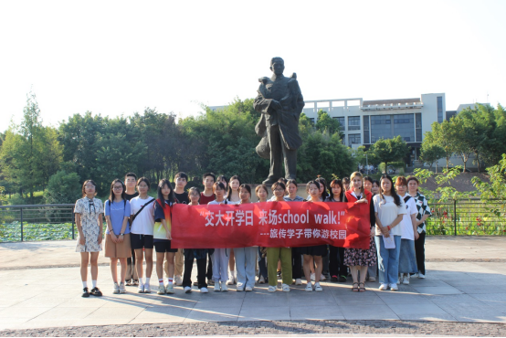 在分别介绍了教学楼、实验楼后,湖滨广场的热闹和饭香四溢的德园食堂吸引住同学们的脚步,他们纷纷讨论自己刚遇上的新鲜活动和午时刚吃的美食。被誉为“校园明珠”的李子湖藏着诸多员工的故事,2023级同学们兴奋的与湖中的黑天鹅“学姐”、“学长”打招呼。活动的末尾是银杏大道,黄萌萌向同学们说道:“明德天下,交通行远。交大人唯明德日新方能行远,唯研学不休、实干不懈、行远不息方能交通天下。”