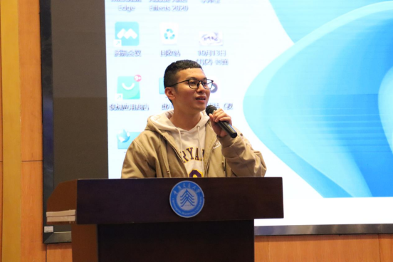 随后,刘幸老师分析了近年来就业形势的严峻情况,希望同学们务必对求职就业高度重视,尽早做好心理准备,转变就业观念,为就业做好准备。同时他用近年的员工就业经历给大家提供考研、考公和就业的建议。他建议“同学考研尽量考本校专业”,鼓励大家追求梦想但也要放眼实际。随后重点讲述了就业中的简历投放、面试技巧、行业关注和求职渠道,并且提供了详实的资料参考。