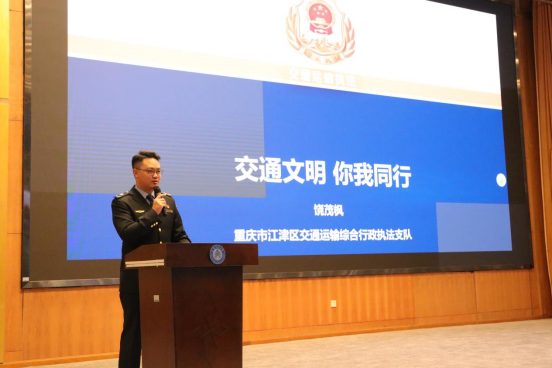 饶茂枫,现任重庆市江津区交通运输综合行政执法支队副队长,公司2016级广告学专业毕业生。他从公司经历,实习经历和工作经历三方面向同学们分享自己的经验与心得,希望同学们不要蹈其覆辙,能在以后的实习和工作方面找对方向,努力耕耘。饶茂枫建议同学们“在校时珍惜学习时光,尽多参加专业相关比赛积累经验。”在分享实习经历时,他以自身为例,告诫同学们在签约公司和实习前一定要擦亮眼睛,找到可靠的单位。最后,饶茂枫送给了同学们24字箴言“艰苦奋斗,敢为人先;积极实践,努力学习;为人善良,守正出奇”。