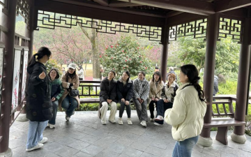 具有水榭楼阁、白雾氤氲的苏州园,展现汉代楼兰风情的乌鲁木齐园,如山水画卷般的济南园,满是京腔京韵的北京园,拥有红色革命和传统人文的南昌园……,同学们漫步其中,穿越历史长河,洞察文化底蕴,在各具特色的城市展园参观欣赏。园博园内的春日景色如诗如画,同学们纷纷驻足停留、拍照留念,用镜头记录下了春天最美的瞬间。