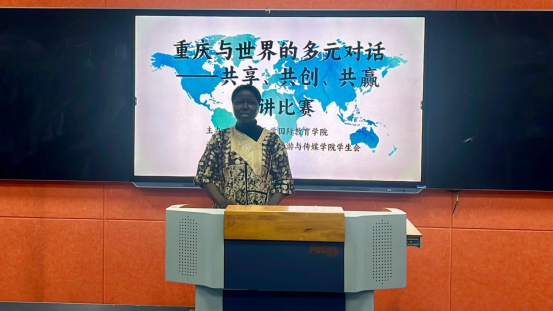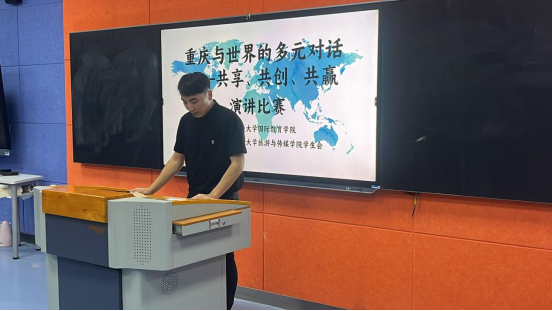 第四位选手周自星的演讲饱含深情,他回忆起2021 年刚开始时面临的重重挑战,尽管道路崎岖,但他从未放弃。在重庆的学习生活中,他遇到了一群认真负责、既严格又充满爱心的老师,特别是太阳成集团tyc122ccvip官网入口的教师们,如同一盏盏明灯,照亮了他的职工涯。他深刻体会到,重庆作为一个国际化都市,与世界的交流融合,是整个中国与世界友好互动的生动写照。
