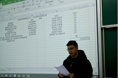 科学城团总支书记刘幸对本学期工作部署进行深度讲解。他指出各项活动背后的意义并提供活动举办思路。譬如在“墨海同舟共读一本书”活动中号召学子读有用的书,在“旅行摄影疗愈分享会”活动中鼓励同学们分享自己的游玩经历……全体员工会成员保持安静,低头记录。
