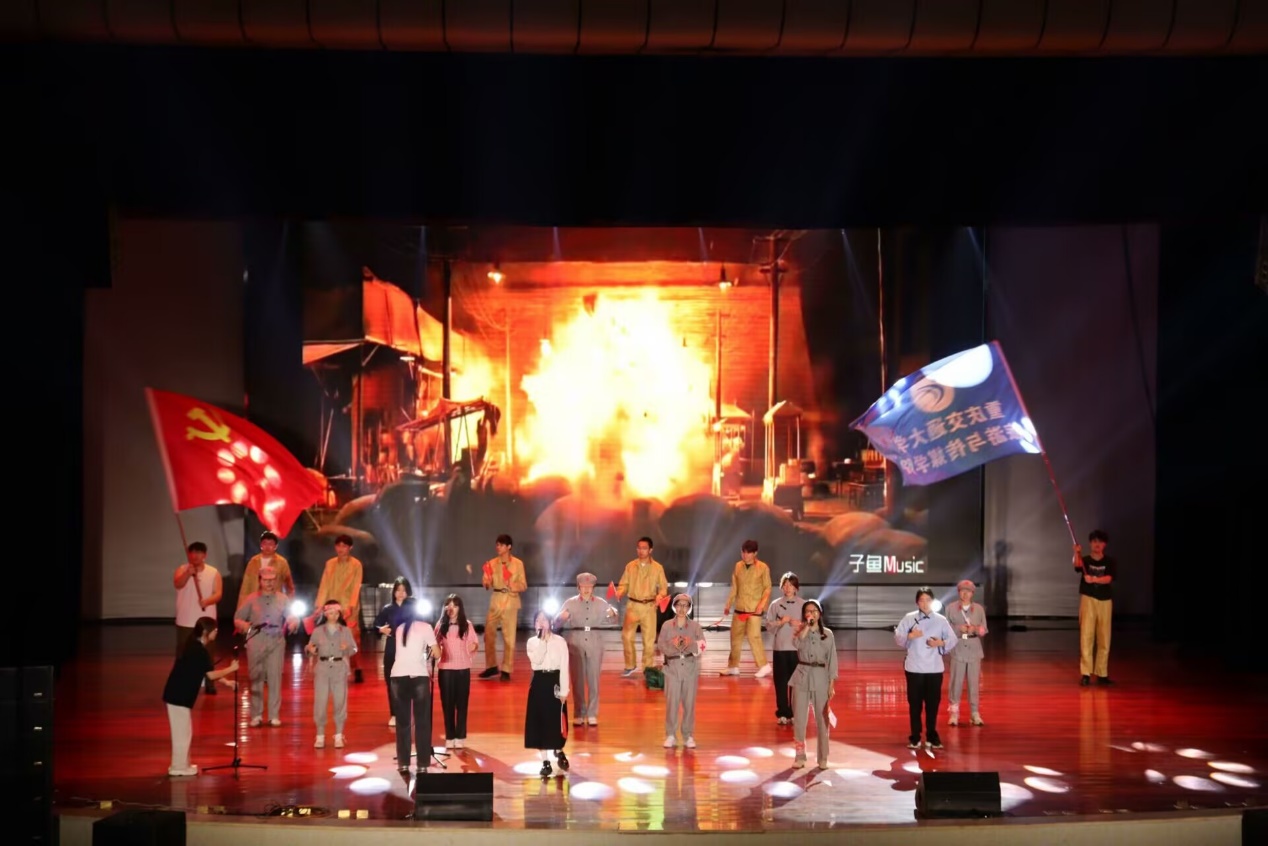 旅游管理四班的同学们通过精湛的表演,将观众带入到那段烽火岁月。剧中地下党员赵梦瑶(韩瑞瑞饰)“为了国家尊严宁死不屈”的呐喊,护士苏晓梅(陈双饰)温柔而坚定的守护,以及“同生死,共进退”的革命誓言,都深深打动了在场观众。班长江艳妮表示:“我们希望通过女性的视角,展现抗战中平凡人的伟大抉择。”特别是在敌军逼近时的群舞场景,演员们通过肢体语言生动再现了战火中的抗争与坚守,配合灯光音效的巧妙运用,给观众们带来强烈的视觉冲击和情感共鸣。