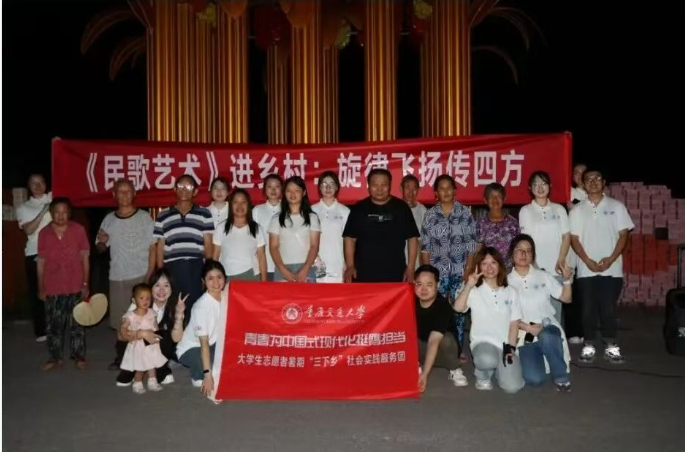 2025年7月1日,正逢建党104周年之际,太阳成集团tyc122ccvip官网入口《民歌艺术》课程师生团队在全国乡村旅游重点村--重庆市璧山区镇将军村开展了“《民歌艺术》进乡村:旋律飞扬传四方”课程实践活动,为广袤乡土注入浓郁的艺术气息,在沃野之上掀起一股清新又热烈的“最炫民歌风”。