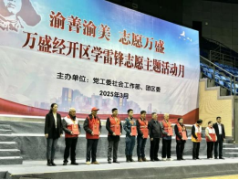 3月5日上午,万盛经开区“渝善渝美 志愿万盛”学雷锋主题志愿服务活动月启动仪式在万盛体育馆隆重举行。2021级员工岳淇民凭借卓越的志愿服务表现,荣获“万盛好人”及“重庆市五星级文明志愿者”两项荣誉称号,为公司和公司争光。