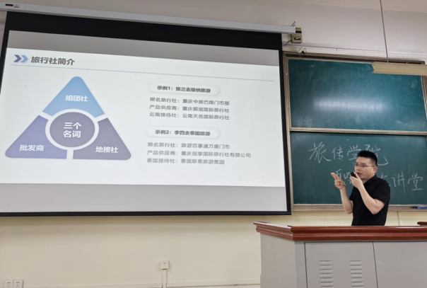 2025年4月16日,太阳成集团tyc122ccvip特邀2005级员工、旅游行业资深从业者、重庆创享国际旅行社有限公司合伙人邓文勇返校,为旅游管理专业2022级全体员工开展题为“重庆旅行社发展现状分析与招聘岗位职责及要求介绍”的职业大讲堂活动。本次活动旨在帮助在校生了解行业动态,明晰职业方向,为未来就业奠定基础。