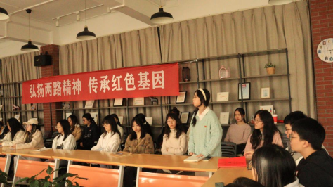 宣讲活动最后,两位老师与本科生第一党支部的全体党员一起重温入党誓词,举起右拳面向党旗郑重宣誓。铮铮有力的誓言充分体现了党员同志们坚定不移听党话跟党走的决心,也是传承发扬“两路”精神、“红岩”精神,继续在党性实践中锻炼自身的郑重承诺。