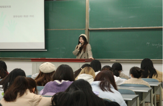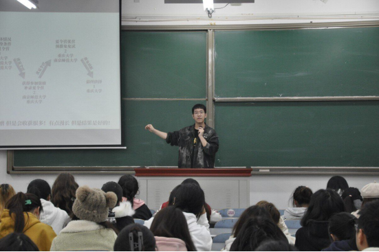“我们可以保持适度的焦虑,积极上台锻炼自己的能力,与他人保持良好的人际关系,并抓住每一个机会。”桂美艳结合自身专业特色,分别从就业和升学两个方面向大家进行了详细的分析,为同学们介绍了旅游管理专业在职业规划时可以选择的岗位,鼓励大家勇敢参加各种竞赛。