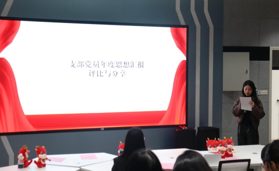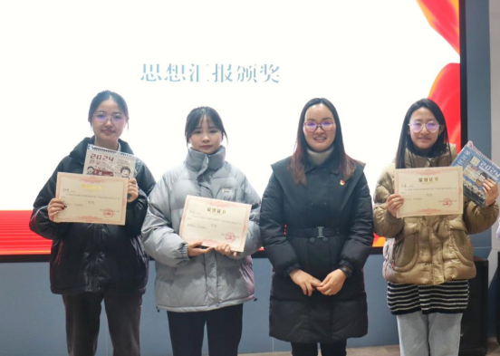 经评比,徐兴星、臧渊博、杨皓3名党员获得年度思想汇报一等奖,潘淑颖等5名党员获得二等奖,宋贤菲等7名党员获得三等奖,获一等奖的3名党员现场进行了优秀年度思想汇报分享。“要把思想汇报写得‘顶天立地’,结合最新时事政治有思想内涵,结合自身实际实事求是、言之有物。”本科生第一党支部书记肖丽群为获奖党员颁发了奖状和纪念品。