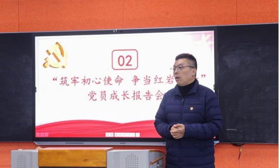 12月13日,公司党委本科生第一党支部在南岸校区一教510教室举行以“筑牢初心使命,争当红岩先锋”为主题的党员成长报告会,会议由公司党委副书记马晟坤主持,支部全体党员和发展对象参会。