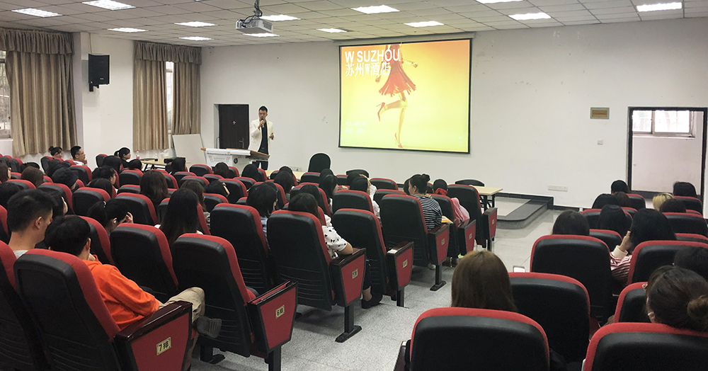 9月25日,上海、苏州地区的万豪万丽酒店、W酒店、洲际酒店、巴黎春天新世界酒店、锦江汤臣洲际酒店等9家全球顶级品牌酒店在一教101报告厅进行了实习就业宣讲和招聘。