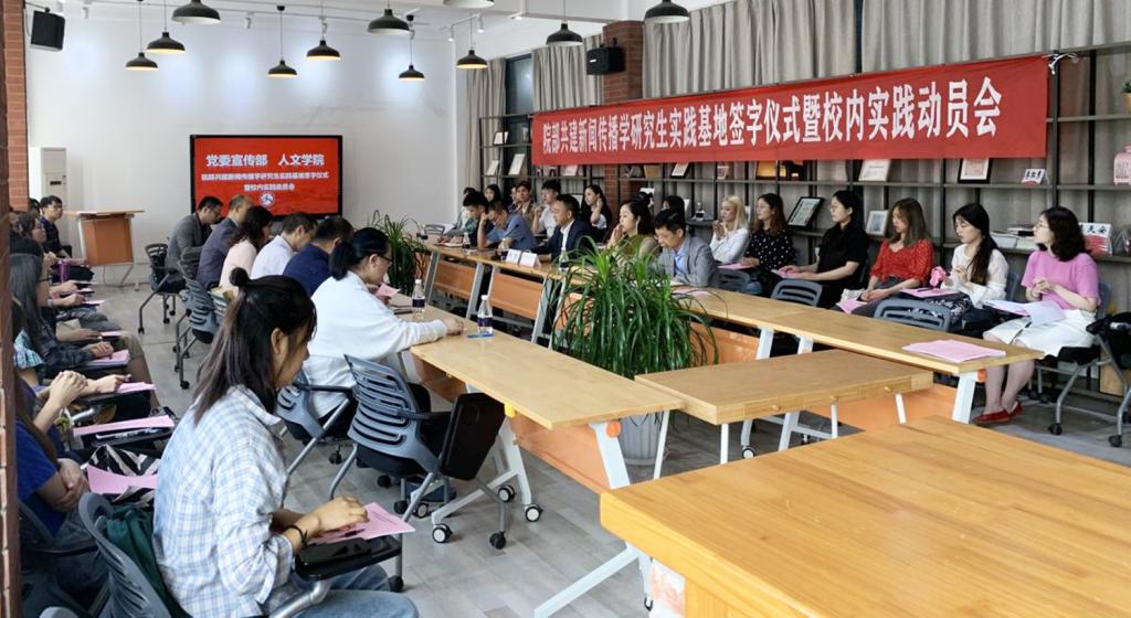 9月24日9:00,党委宣传部与人文公司共建新闻传播学研究生实践基地签字仪式暨校内实践动员会在南岸校区第一教学楼10414会议室召开。公司党委常委、宣传部部长白凯,副部长卢志荣及有关科室负责人;经理张玉蓉,硕士研究生导师、2020级研究生参会;副经理郑涛主持会议。