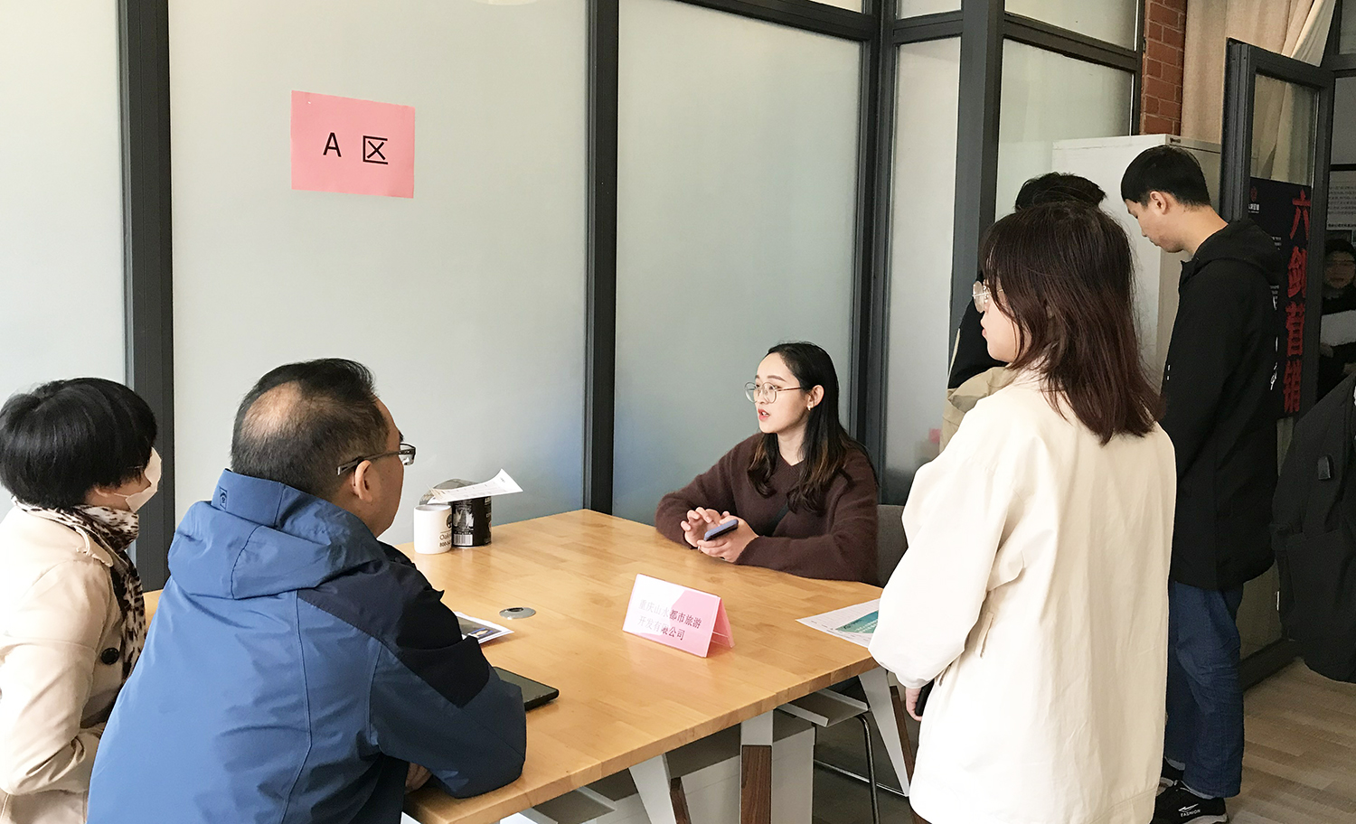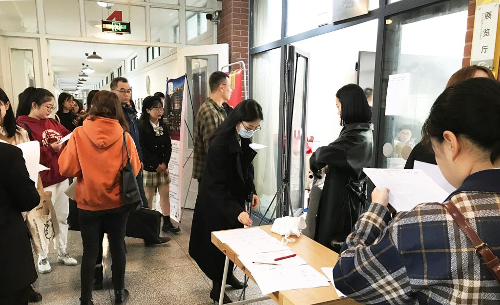 启动仪式结束后,各企业来到招聘室,与同学们进行交流和现场面试。2021届毕业生近100人结合求职目标和实际情况,现场投递简历,与HR面对面沟通,多岗位进行面试,不时听取公司老师意见建议,现场人流穿梭、氛围十分热烈;2018级各专业员工代表也来到现场,投递简历、争取面试,训练胆量、积累经验,寻找实习实训机会和岗位,听取用人单位建议。重庆嘉驰国际公司HR陈莹莹表示,人文学子素质优良、适应能力强、职业精神好,去年招聘的几名优秀毕业生在岗表现优异,因此今年主动申请参加专场招聘,希望继续寻找好苗子;重庆五谷文化传播有限公司董事长、公司2011届员工李俊女士指出,感谢公司的培养,希望拿出的总经理助理、文案策划等岗位,能吸引优秀的学弟学妹加入,共同创业奋斗;重庆安达文化传播有限公司负责人表示,人文毕业生专业素质扎实、整体表现优良,希望能择优录取,为公司储备更多业务人才与管理干部。