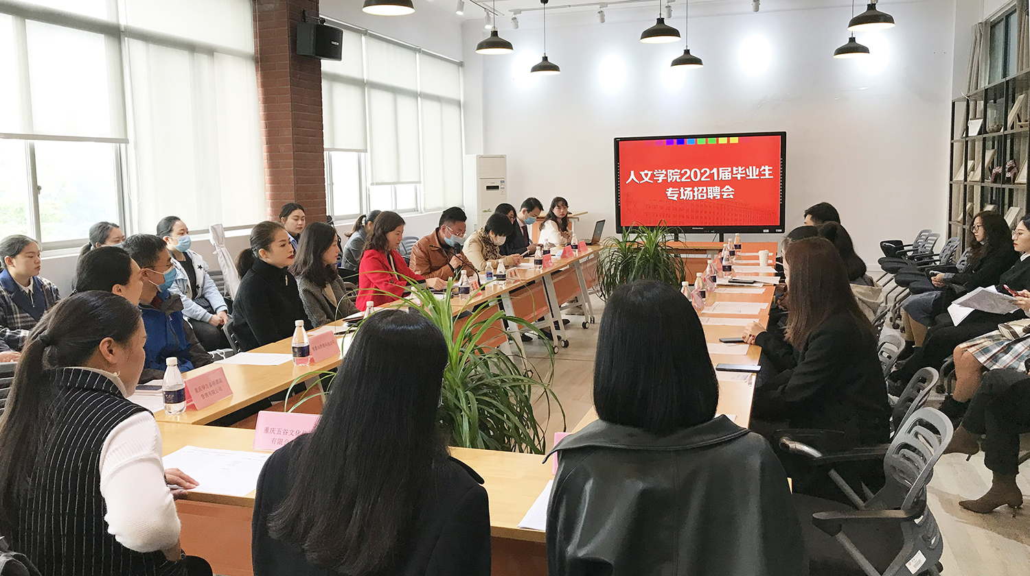 2020年11月6日9:00,人文公司2021届毕业生专场招聘会在第一教学楼414会议室启动,经理张玉蓉、党总支副书记魏巍,人力资源类、文创类、新传类、文旅类等20家企业负责人及HR参加启动仪式。