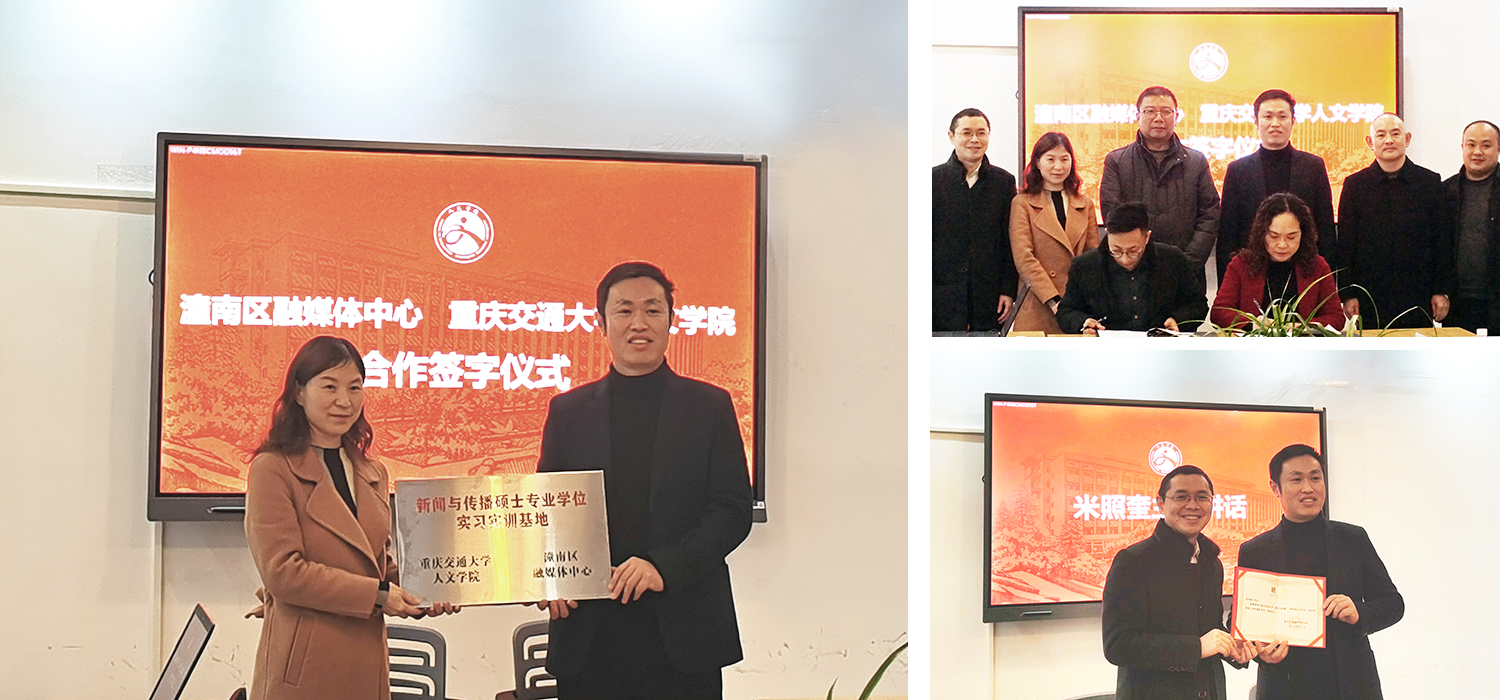 张玉蓉致辞表示欢迎,简介了公司及公司学科专业、人才培养、科研创新、交流合作等方面情况,希望校企双方建立互信、加强联络、保持交流、深化合作,特别是在本硕员工实习实训、优秀员工聘任、双方互派人员挂职等方面进一步细化合作方案、逐一推进落实。米照奎讲话,简介了潼南区融媒体中心的机构性质、组织架构、内部运行、媒介运营、绩效改革等情况,特别介绍了在推进体制机制改革、创新媒体发展等方面的经验,表示一定履行协议条款,主动对接公司需要,加强理论研究与共同申报科研项目等方面的务实合作,全力为公司毕业生提供更加贴合的实习就业岗位与良好的事业发展平台。