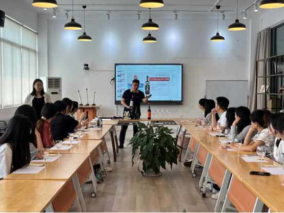 会上,宁夏国际葡萄酒交易博览中心向公司推介了酒水服务、中国葡萄酒文化等教材,该司表示,公司员工素质突出,综合能力优秀,选择了公司作为5月18日召开的宁夏贺兰山东麓葡萄酒重庆品鉴推介活动志愿者组织单位,选派16名志愿者同学为活动提供接待、侍酒等服务工作。期间,云鹏宇与侍酒志愿者同学们亲切交谈,了解了同学们的主要学习内容及过往侍酒经历,还在现场为同学们介绍了葡萄酒相关礼仪及酒水知识,从品鉴酒款名称、葡萄品种、酒精度、口感、价格等方面分析了品鉴推介活动中用的六款酒水。随后,秦芳为同学们演示了从酒水准备、酒具选用、示酒到请客人品酒、斟倒酒水等一系列服务步骤。同学们在听取了对服务流程、服务标准的讲解后,开始实操演练,增强实干能力。